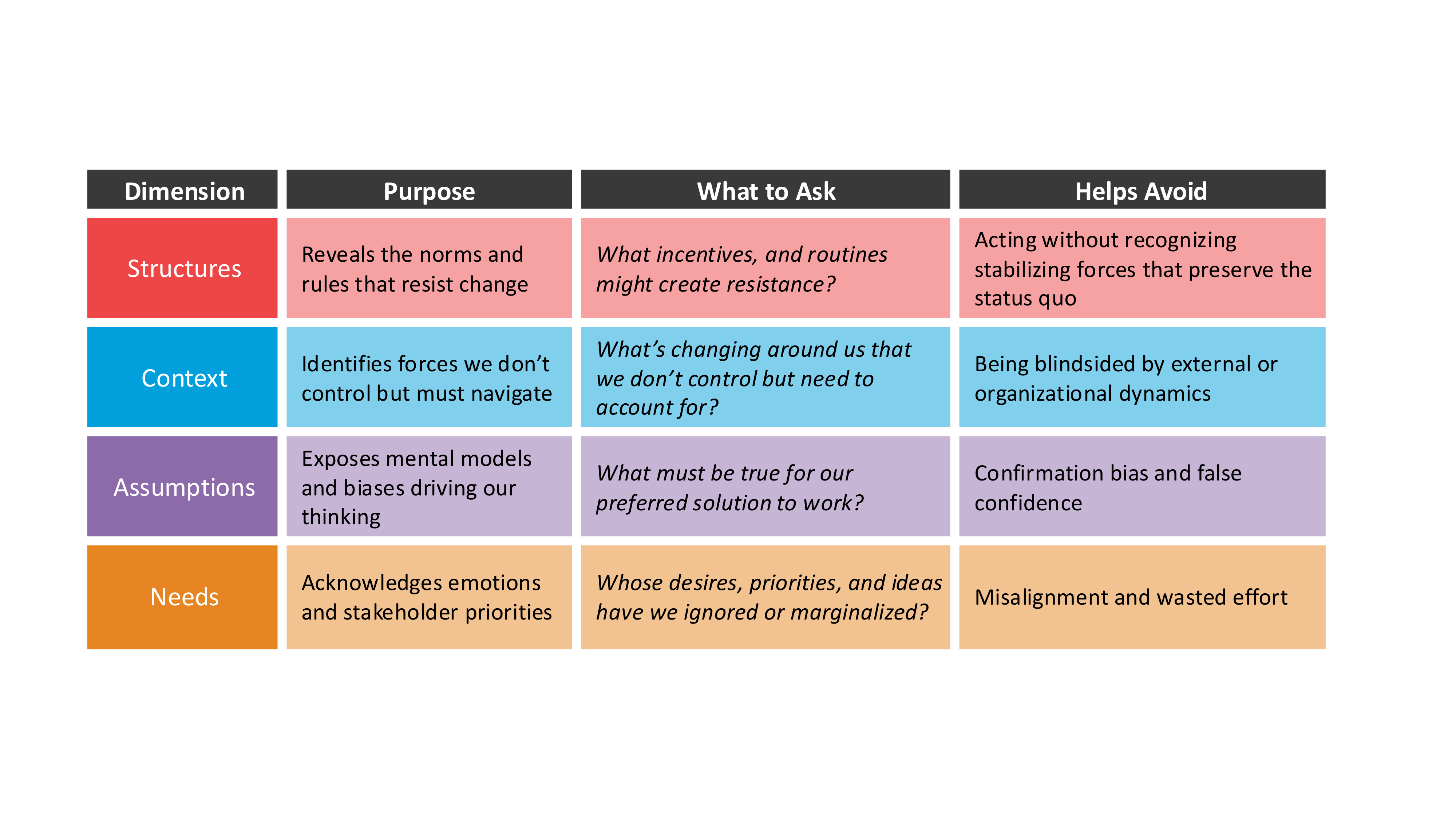 You need a tool that makes information gathering both efficient and comprehensive. When moving from thinking to action, pause and SCAN. The four questions based on the SCAN framework will prompt you to consider important information you might be disregarding or overlooking.